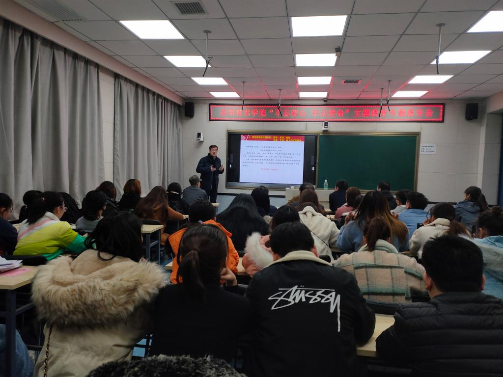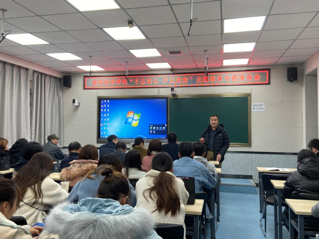 2019年11月29日下午,应用技术公司党总支邀请马克思主义公司教师屈旻博士在金花校区主楼西配楼411室作了题为《新时代教师的初心与使命》主题报告。英国365公司官网全体党员及员工入党积极分子参加了此次报告会,报告由应用技术公司党总支书记王宇主持。