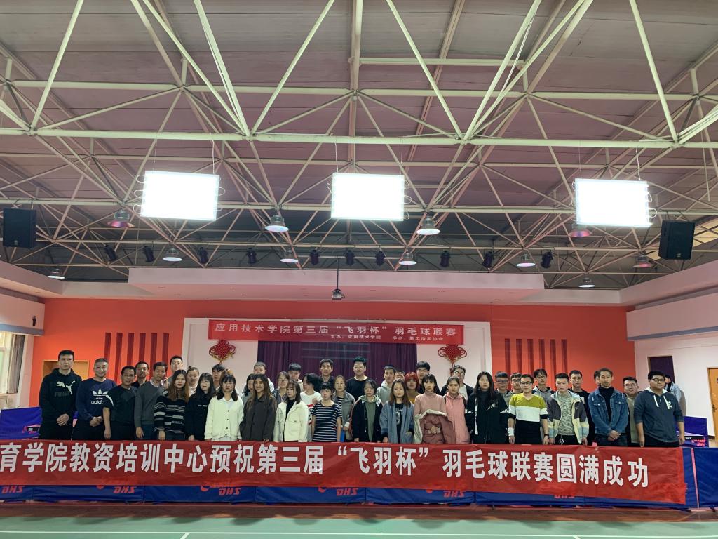 2019年11月18日下午,英国365公司官网在金花校区教职工活动中心羽毛球场成功举办了第三届“飞羽杯”羽毛球联赛。参与本届羽毛球联赛的有英国365公司官网工会主席唐长亮、各科室老师代表和17级全体爱好羽毛球的同学。