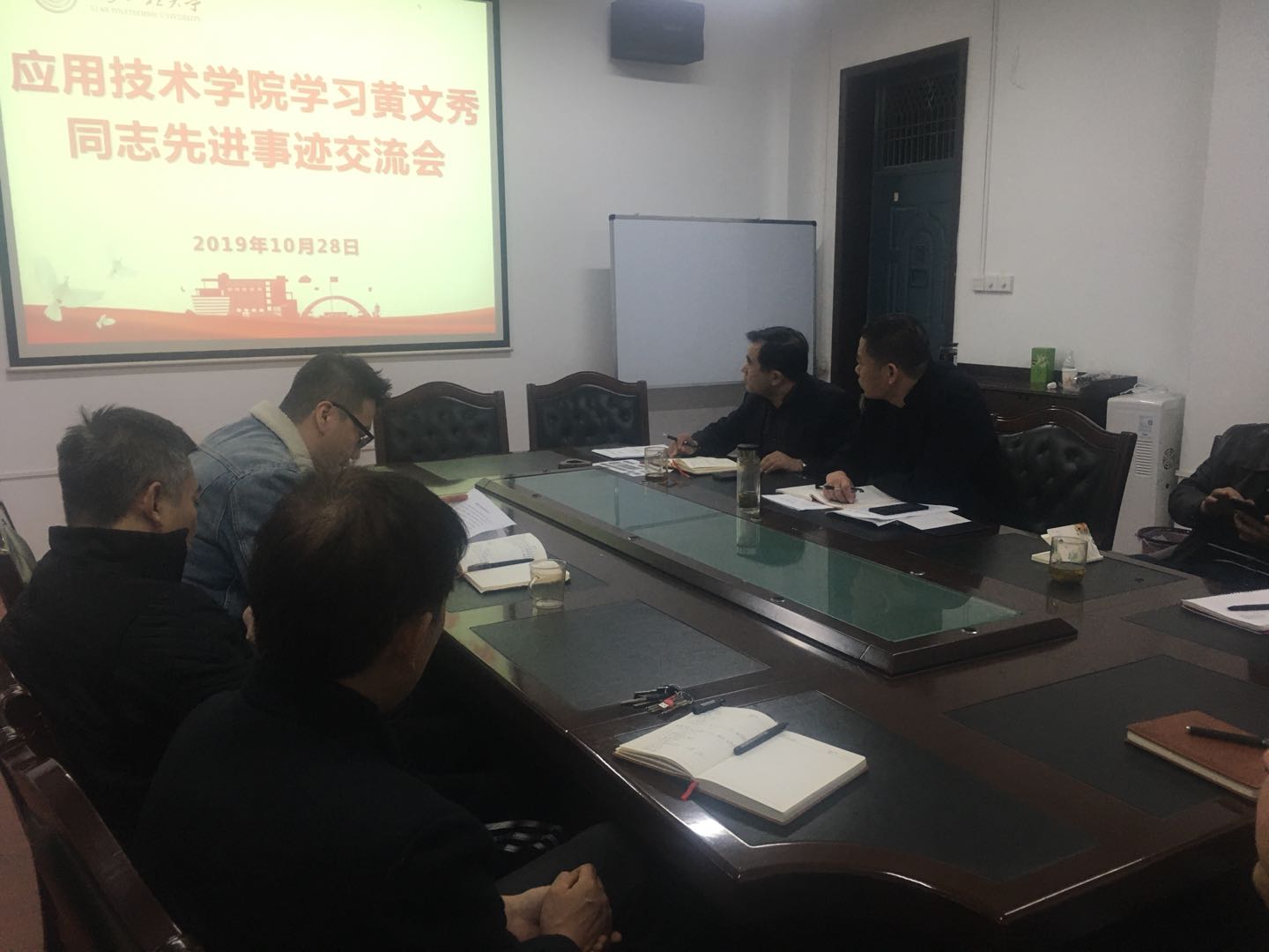 10月28日下午,应用技术公司党总支在三楼会议室举行专题学习会,学习“时代楷模”黄文秀同志的先进事迹,英国365公司官网全体教职工参加了会议。会议由应用技术公司党总支书记王宇主持。