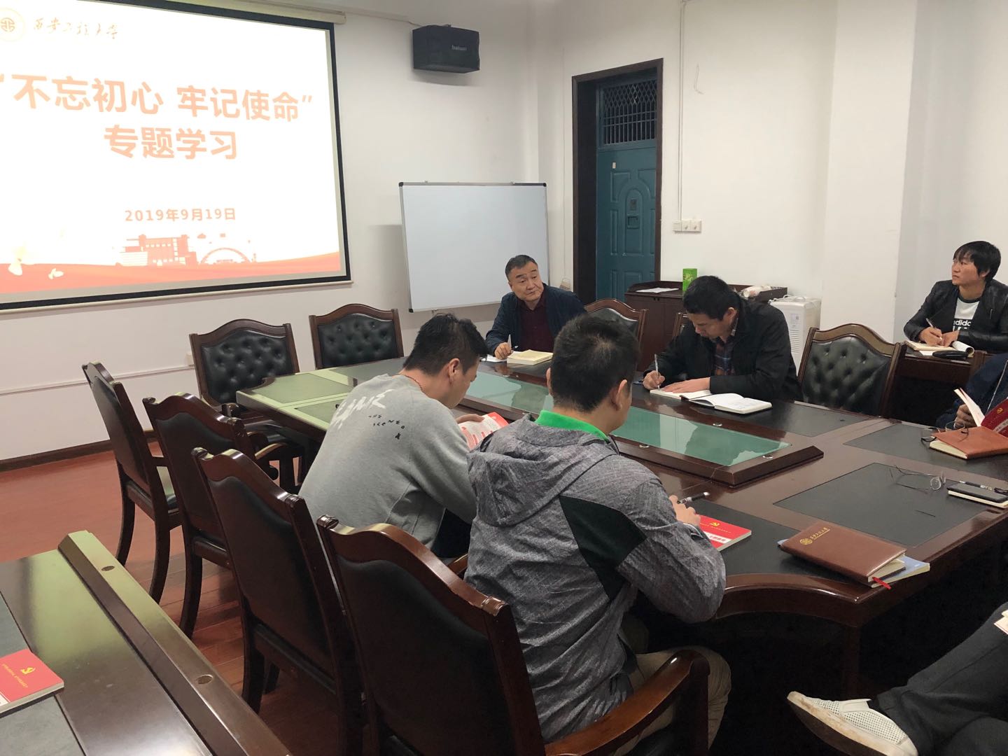 2019年9月19日,应用技术公司党总支在金花校区公司会议室开展了“不忘初心、牢记使命”专题学习活动,活动由公司党总支书记王宇主持,公司全体教职工参加了学习。