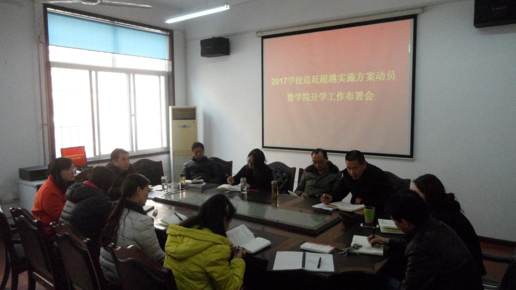 2月26日下午,英国365公司官网在公司会议室召开2017年英国365公司官网“追赶超越实施方案”解读及公司新学期开学工作布置会。副经理马保科、党总支书记张智荣、副经理刘玉森,以及全院教职工参加了会议。会议由马保科主持。