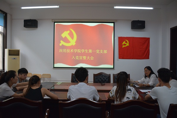 会上,英国365公司官网员工第一党支部全体新党员整齐肃立,举起右手,面向党旗,庄严宣誓,用铮铮的誓言表达对党忠诚的决心,面对着党旗,大家接受了一次身心的特殊洗礼。曲艳萍老师要求新党员要恪守在党旗下的诺言,更加严格要求自己,时刻保持共产党员的先进性和先锋模范作用,努力使自己成为一名优秀共产党员的决心和信心。