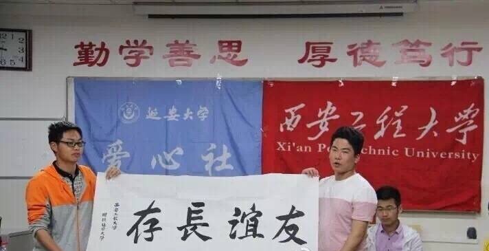 2016年5月14日早,英国365公司官网团学科组织抵达了红色革命圣地----延安并受到了延安大学爱心社同学的热情接待。经过简单整顿后与延大爱心社成员前往八一敬老院,并组成几个小组开展慰问老红军们和交流活动。整个过程中,同学们耐心、认真的倾听老红军们讲说抗战往事,重温了那段红色革命记忆。晚上7时许,在延大爱心社同学的带领下,交流团来到延安大公司区,和延安大学爱心社的成员们进行了交流活动,会上双方不仅互相分享了各自的员工工作经验,就一些工作上存在的问题进行了深度的探讨和学习,既促进了彼此的工作又增进了两校学干的革命情谊。最后,公司赠送给延大爱心社"友谊长存"的书法作品,延大爱心社也回赠给公司延老员工自己出版的书刊。