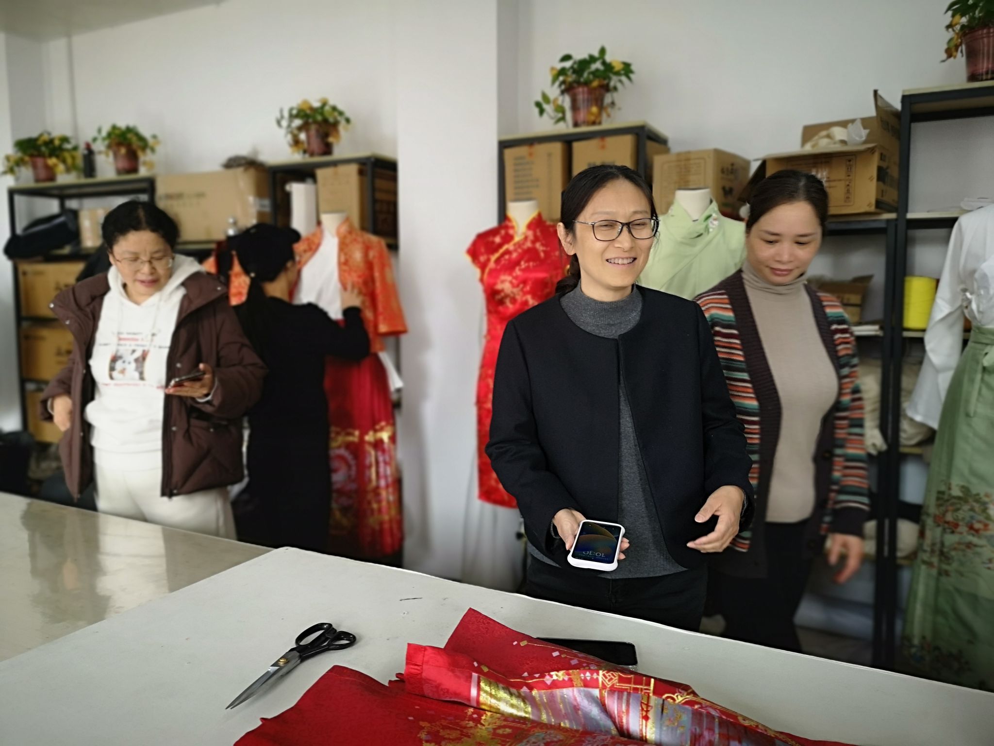 活动还安排了汉服体验环节,当走进汉服体验室,每一件汉服都是匠心独运的艺术瑰宝,唐制、宋制、明制……汉之古朴、唐之飘逸、宋之淡雅、明之端庄,每一种款式都惊艳到大家。在专业人员的指导下,大家纷纷换上精美汉服,仿佛穿越回古代,每一处衣袂的褶皱都散发着独特的古韵,让大家亲身感受传统文化的魅力。
