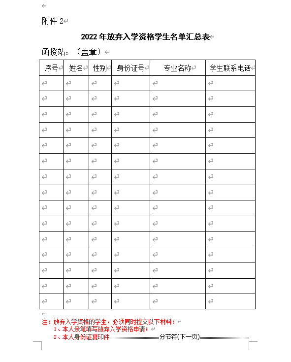 附件2: 2022年放弃入学资格员工名单汇总表